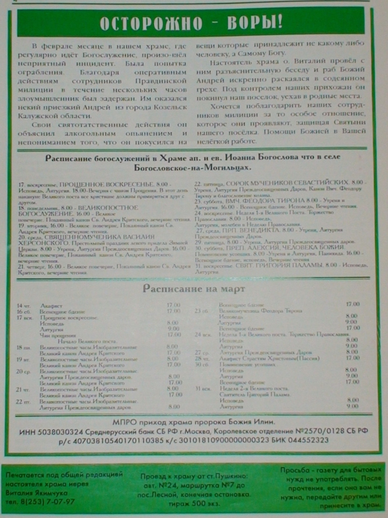 Новости прихода
